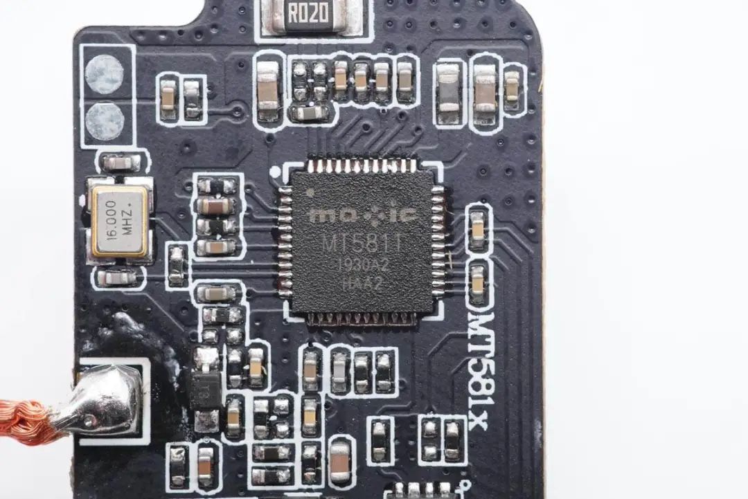 充電頭網(wǎng)通過拆解了解到,充電寶內(nèi)置兩塊PCB小板,之間有泡棉支撐。無線充方案采用美芯晟MT5811,這是一款高度集成的無線充電發(fā)射芯片,符合Qi標(biāo)準(zhǔn)以及高達15/50W的輸出功率,還集成ARM M0 處理器,總的來說在體積、兼容性、性能、效率等方面的表現(xiàn)都很好,能夠滿足客戶的各種要求。