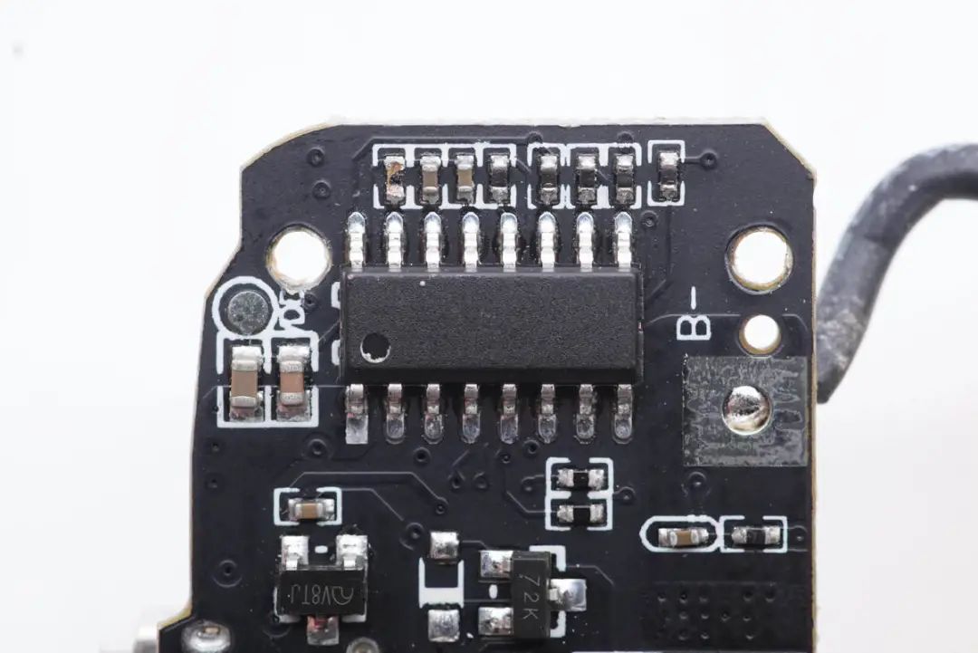 移動電源主控芯片采用智融SW6206。這是一款高集成度的多協(xié)議雙向快充移動電源專用多合一芯片,支持A+A+B+C+L口任意口快充。其集成了5A高效率開關(guān)充電,22.5W高效同步升壓輸出。