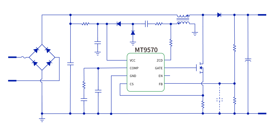 MT9570集成EN待機功能實現(xiàn)超低待機功耗,實現(xiàn)靜態(tài)電流13uA,采用增強型EA,在啟動和動態(tài)負(fù)載期間還具備更小的過沖/下沖,集成誤差放大器易于環(huán)路設(shè)計,為廣大客戶工程師朋友提供性能可靠的PFC電源國產(chǎn)替代解決方案,可廣泛應(yīng)用于USB-PD充電器、AC-DC適配器、LED驅(qū)動器、工業(yè)電源、電動工具等領(lǐng)域。